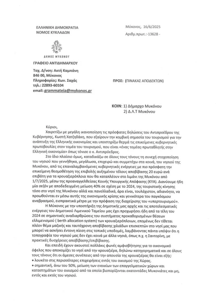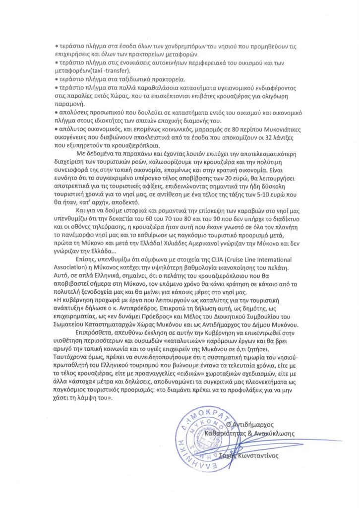 Στο παρακάτω βίντεο ο κ. Βερώνης τονίζει ότι η κρουαζιέρα αποτελεί έναν από τους βασικούς μοχλούς της τουριστικής οικονομίας της Μυκόνου.